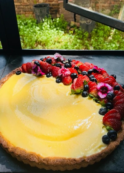 Pate sucree base with a strawberry  marshmallow filling topped with belgium milk chocolate.